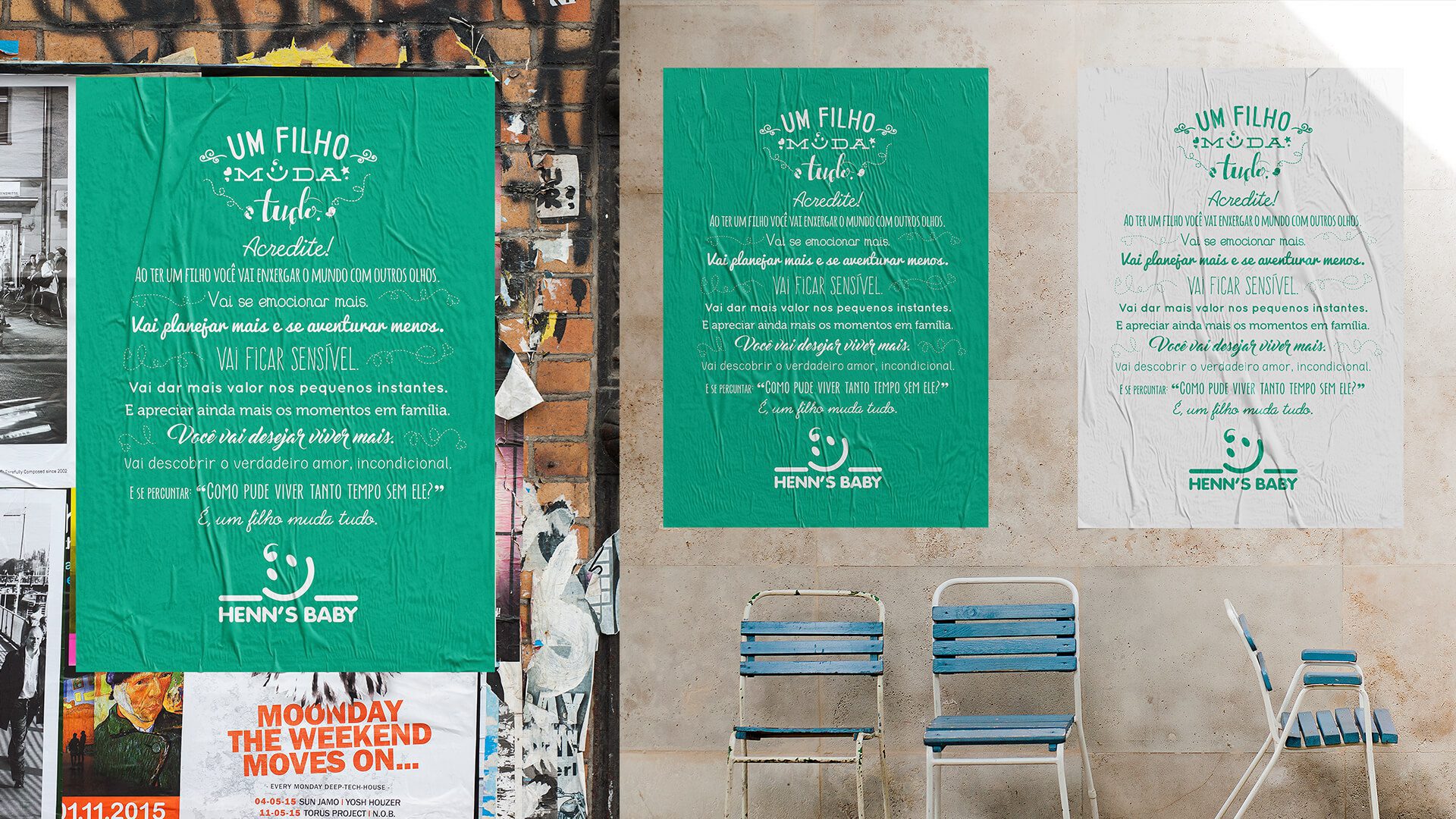 Através da observação do público-alvo e de depoimentos de diversos pais, elaboramos um conceito verdadeiro e que traduz perfeitamente o que acontece na vida de uma família quando nasce um bebê: Um Filho Muda Tudo.